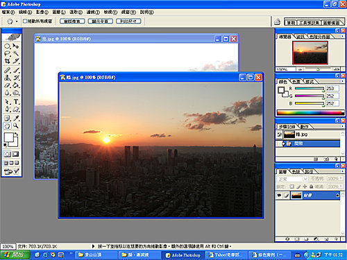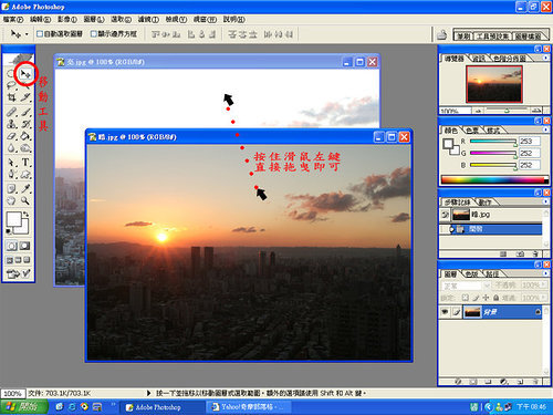 2.將任一照片用移動工具拖曳到另ㄧ張上面
